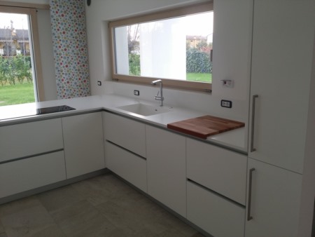 cucina laccata con piano in Corian