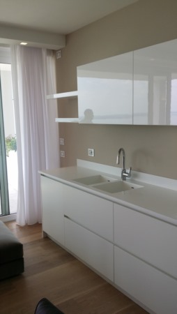 Cucina laccata lucida e opaca e piano in Corian